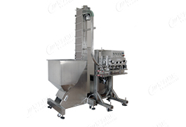 濃醬灌裝機通過伺服電機驅動滾珠絲桿上下運動帶動缸體內的活塞作往復運動來完成灌裝工作。當滾珠絲桿逆時運動時,拉動活塞向下,三通閥關閉,堵頭關閉,料缸上部產生負壓。供料桶內的物料被大氣壓力壓入進料管,通過三通閥進入缸體從而完成吸料工作。當滾珠絲桿順時運動時,推動活塞向上,三通閥打開,堵頭打開,活塞擠壓物料。物料通過出料接頭進入出料管,然后通過灌裝頭進入待灌空瓶完成灌裝工作。活塞式灌裝機對于每次的灌裝是一個機械的單一動作,所以對每一個規則容器都有很高的灌裝精度。