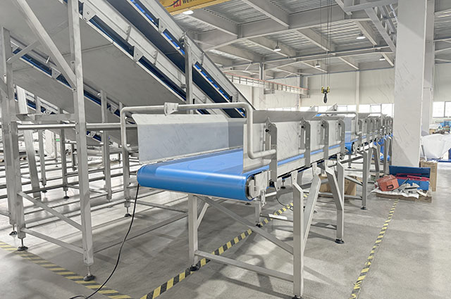 使用自動輸送帶將處理好的蔬菜送入包裝環節。