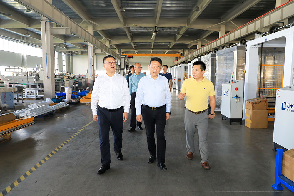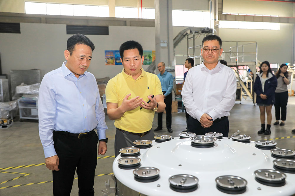 在尼為智能董事長張萬寶的帶領下,上海市金山區副區長、黨組成員潘恩華一行參觀了工廠,查看尼為智能自主研發和生產的自動化生產線,并與尼為智能董事長張萬寶深入交流,了解公司經營、產品應用、存在的困難等情況,認真聽取公司訴求和建議。